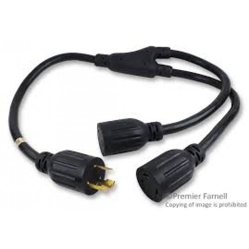 P041-001-2 L6-30P to 2x L6-30R Y Splitter, Heavy Duty - 30A, 250V, 10 AWG, 1 ft., Black