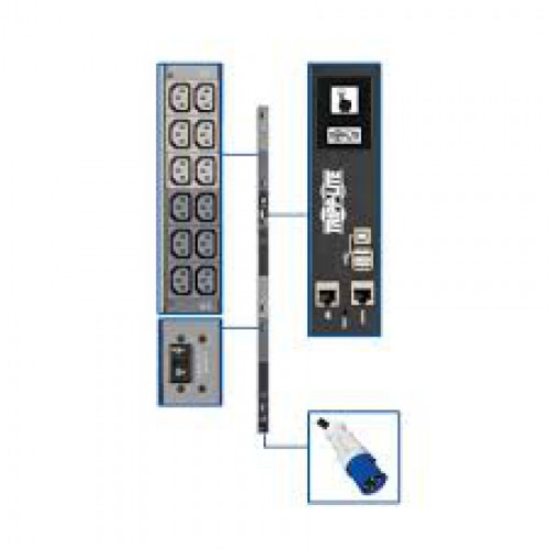 PDU3EVN6G60C 18.7kW 3-Phase Monitored PDU with LX Platform, 208/240V Output (36 C13), IEC 309 60A Blue, 0U, TAA