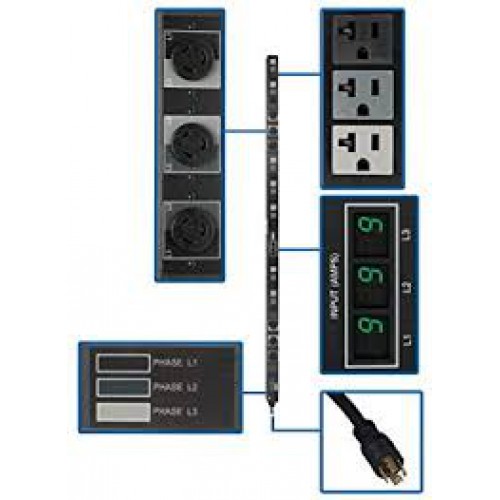 PDU3MV6L2120B 5.7kW 3-Phase Metered PDU, 208/120V Outlets (21 5-15/20R, 6 L6-20R), L21-20P, 6ft Cord, 0U Vertical, TAA