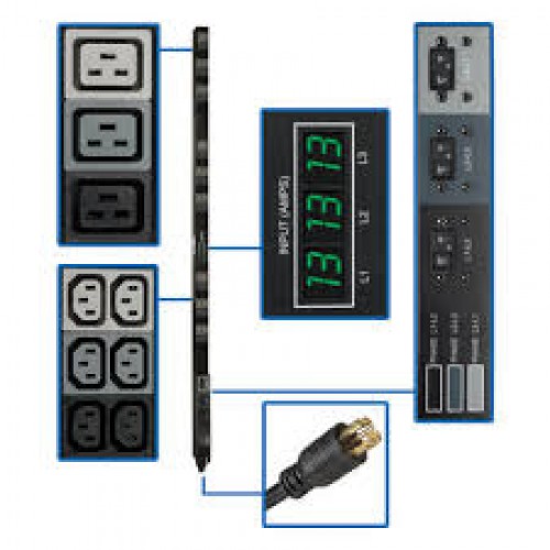 PDU3MV6L2130A 3-Phase Metered PDU, 8.6 kW, 45 208V outlets (36 C13, 9 C19), 6 ft NEMA L21-30P input connection, TAA Compliant