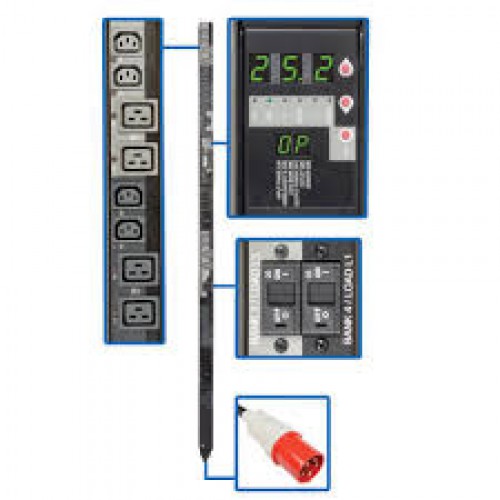 PDU3XVSR6G60A 25.2kW 3-Phase Switched PDU, 240V Outlets (12 C13 & 12 C19), IEC309 60A Red, 415V Input, 6ft Cord, 0U Vertical