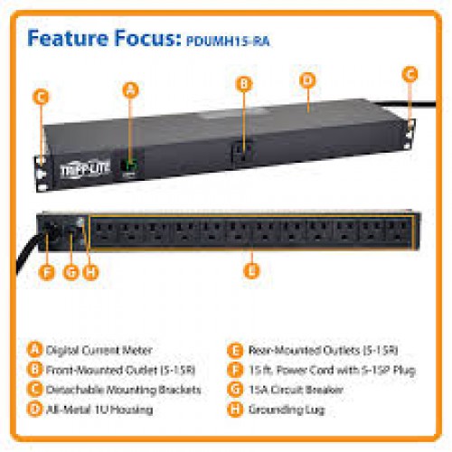 PDUMH15-RA 1.4kW Single-Phase Metered PDU, 120V Outlets (13 5-15R), 5-15P, 100-127V input, 15ft Cord, 1U Rack-Mount