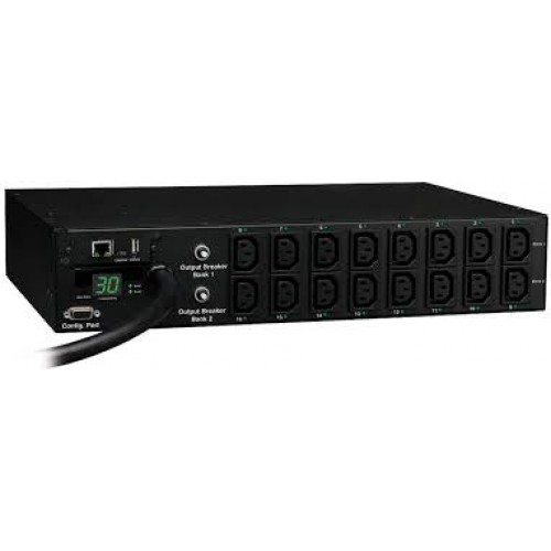 PDUMH30HVNET 5.8kW Single-Phase Switched PDU with LX Platform Interface, 208/240V Outlets (16 C13), L6-30P Input, 12 ft. Cord, 2U Rack-Mount, TAA