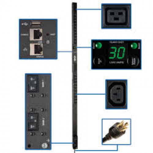 PDUMV30HVNETLX 5/5.8kW Single-Phase Switched PDU with LX Platform Interface, 208/240V Outlets (20 C13 & 4 C19), L6-30P, 0U, TAA