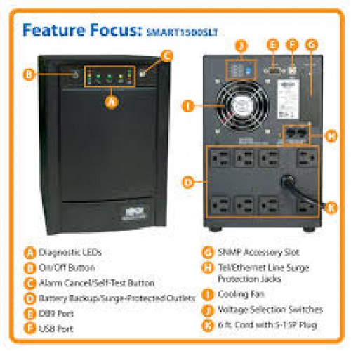 SMART1500SLT SmartPro 120V 1.5kVA 900W Line-Interactive Sine Wave UPS, Tower, Network Card Options, USB, DB9, 8 Outlets