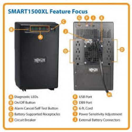 SMART1500XL SmartPro 120V 1.5kVA 980W Line-Interactive UPS, Tower, Extended Run, USB, DB9, 6 Outlets