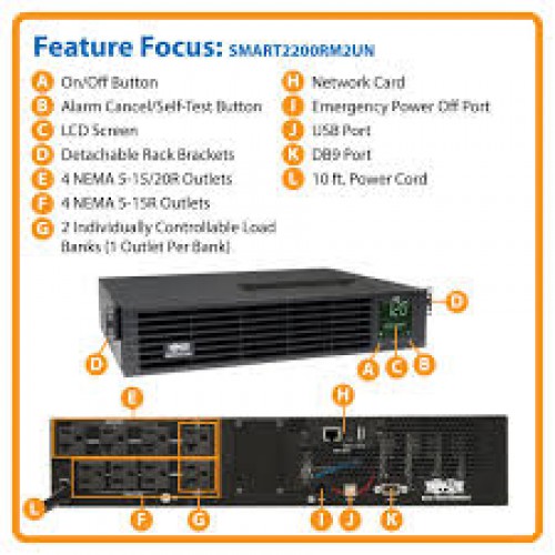 SMART2200RM2UN SmartPro 120V 2.2kVA 1.92kW Line-Interactive Sine Wave UPS, 2U Rack/Tower, Pre-Installed WEBCARDLX Network Interface, LCD Display, USB, DB9 Serial