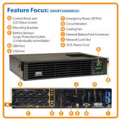 SMART3000RMXL2U SmartPro 120V 3kVA 2.88kW Line-Interactive Sine Wave UPS, 2U, Extended Run, Network Card Options, LCD, USB, DB9