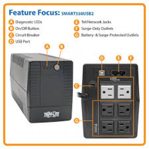 SMART550USB2 550VA 300W Line-Interactive UPS with 6 Outlets - AVR, 120V, 50/60 Hz, USB, Tower