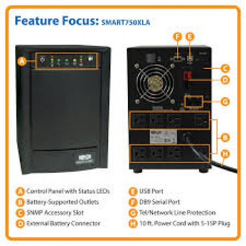 SMART750XLA SmartPro 120V 750VA 500W Line-Interactive Sine Wave UPS, Tower, Extended Run, Network Card Options, USB, DB9 Serial