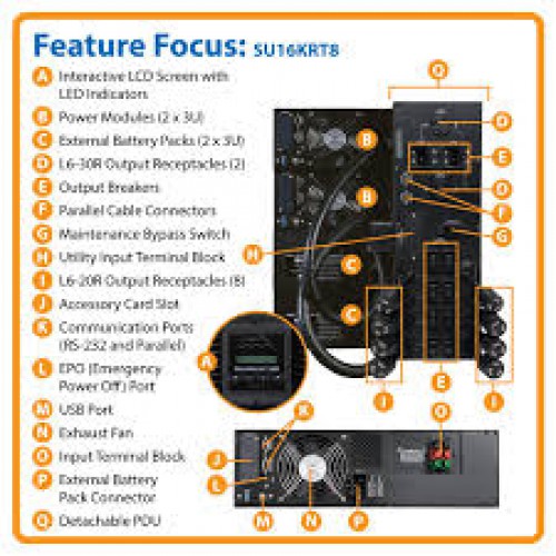 SU16KRT8 SmartOnline 208/240V 16kVA 14.4kW Double-Conversion UPS, N+1, 12U, Network Card Slot, USB, DB9 Serial, Bypass, L6-20R