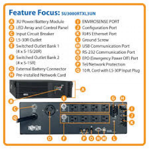 SU3000RTXL3UN SmartOnline 120V 3kVA 2.4kW On-Line Double-Conversion UPS, 3U Rack/Tower, Extended Run, WEBCARDLX Network Interface