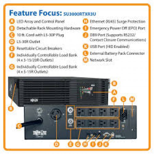 SU3000RTXR3U SmartOnline 120V 3kVA 2.4kW Double-Conversion UPS, 3U, Extended Run, Oversize Batteries, Network Card Slot, USB, DB9