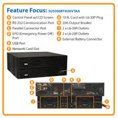 SU5000RT4UHVTAA SmartOnline 208/240V 5kVA On-Line UPS - Double Conversion, 4.5kW, 4U, Network Card Option, TAA Compliant
