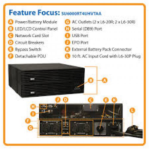 SU6000RT4UHVTAA SmartOnline 208/240V 6kVA On-Line UPS – Double Conversion, 5.4kW, 4U, Network Card Option, TAA Compliant