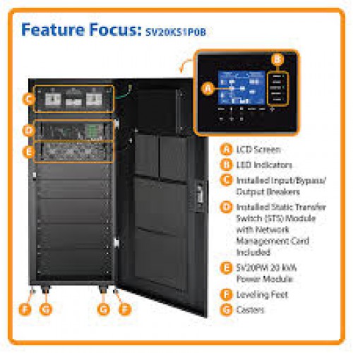 SV20KS1P0B SmartOnline SV Series 20kVA Small-Frame Modular Scalable 3-Phase On-Line Double-Conversion 208/120V 50/60 Hz UPS System, No SVBM Battery Module
