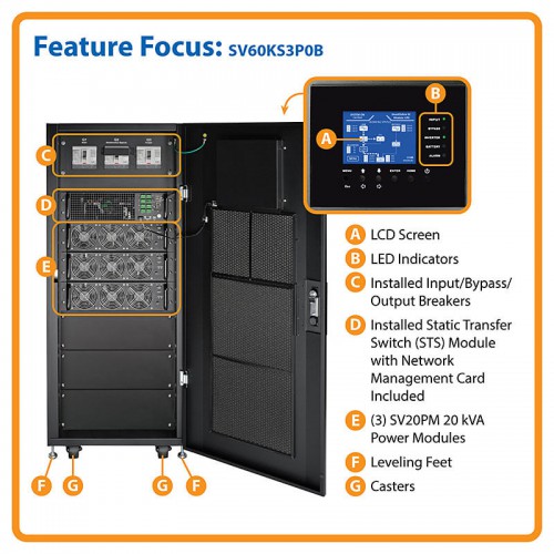 SV60KS3P0B SmartOnline SV Series 60kVA Small-Frame Modular Scalable 3-Phase On-Line Double-Conversion 208/120V 50/60 Hz UPS System, No SVBM Battery Modules