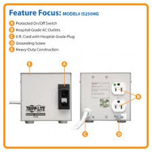 IS250HG Isolator Series 120V 250W UL 60601-1 Medical-Grade Isolation Transformer with 2 Hospital-Grade Outlets