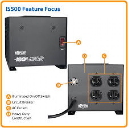 IS500 Isolator Series 120V 500W Isolation Transformer-Based Power Conditioner, 4 Outlets