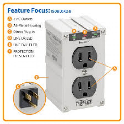 ISOBLOK2-0 Isobar 2-Outlet Surge Protector, Direct Plug-In, 1410 Joules, Diagnostic LEDs, Metal Housing