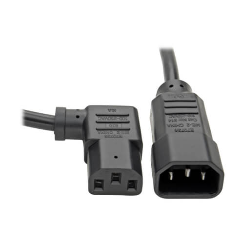 P004-002-13RA C14 to Right-Angle C13 Computer Power Extension Cord, PDU Style - 10A, 100–250V, 18 AWG, 2 ft., Black