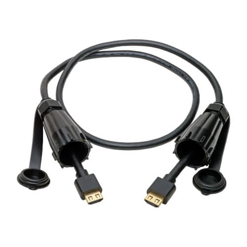 P569-003-IND2 High-Speed HDMI Cable with Hooded Connectors - Industrial, IP67-Rated, 4K, Ethernet, M/M, Black, 3 ft. (1 m)