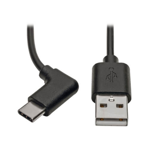 U038-003-CRA USB Type-A to Type-C Cable, M/M, Right-Angle USB-C, 2.0, 3 ft. - Thunderbolt 3 Compatible