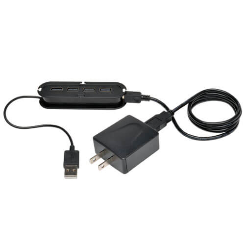 U222-004-R 4-Port USB 2.0 Ultra-Mini Compact Hub with Power Adapter