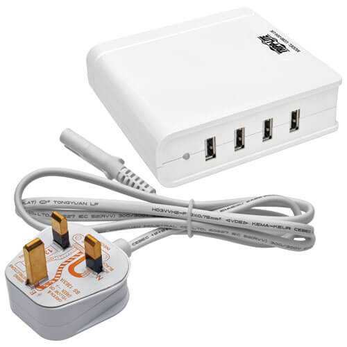 U280-004-UK 4-Port USB Charging Station, 5V 6A/30W USB Charger Output, UK Version