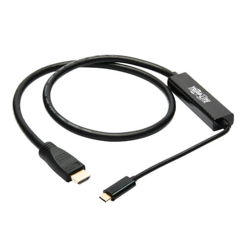 U444-003-H4K6BM USB-C to HDMI Adapter Cable (M/M) - 3.1, Gen 1, Thunderbolt 3, 4K @ 60 Hz, Converter in Middle of Cable, Black, 3 ft.