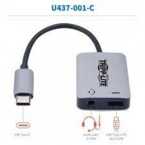 U437-001-C USB-C to 3.5 mm Stereo Audio Adapter - USB 3.1 Gen 1 (5 Gbps), PD 3.0, Silver