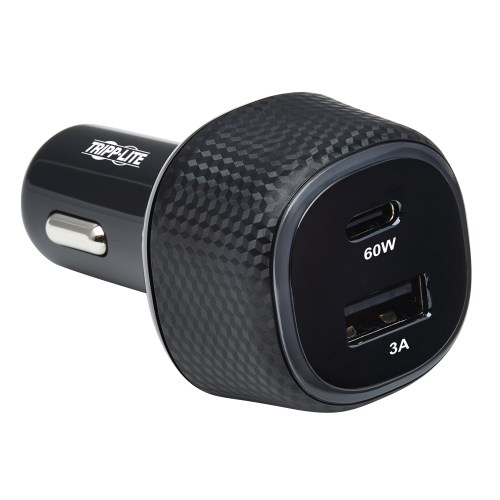 U280-C02-63W-1B Dual-Port USB Car Charger, 63W Max - USB-C PD 3.0 Up to 60W, USB-A QC 3.0 Up to 18W